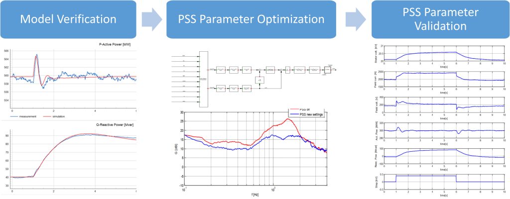 ZETES Termik Santrali'ndeki (2790 MW) ünitelerin Güç Sistemi Stabilizatörlerinin (PSS) parametre ayarları başarılı bir şekilde optimize edilmiştir. Ünitelerin PSS optimum ayarları, TEİAŞ’ın talep ettiği şekilde, hem yerel (1Hz) hem de bölgeler arası (0,15Hz) salınımlara pozitif sönümleme sağlayacak şekilde test edilmiştir.